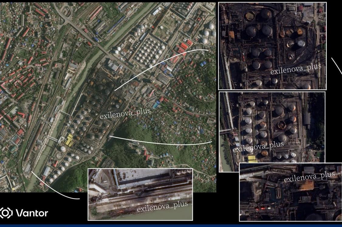 Значительная часть резервуарного парка — ключевого узла хранения и накопления нефти Туапсинского НПЗ — повреждена или уничтожена после атаки украинских беспилотников. Об этом свидетельствуют спутниковые снимки на основе данных компании Vantor, опубликованные 26 апреля украинским OSINT-проектом Exilenova+.