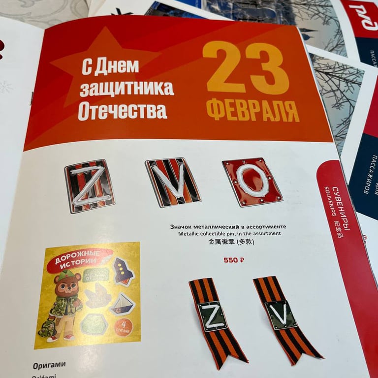 Сувениры, посвященные российскому вторжению в Украину в российском поезде. Фото из личного архива Анны Яровой.