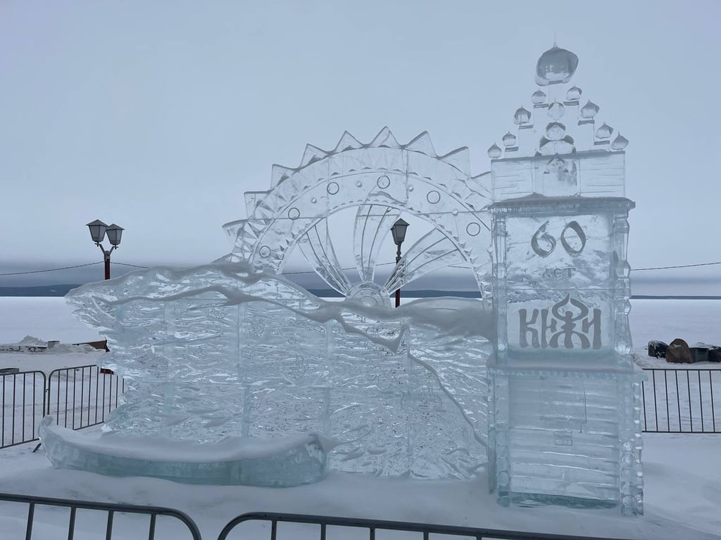 Ледовая скульптура в честь Музея «Кижи» на набережной Петрозаводска. Фото из личного архива Анны Яровой..