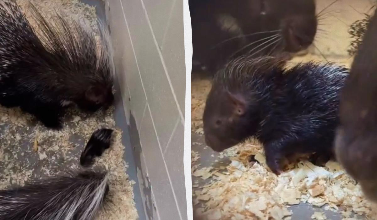 Родители-дикобразы трогательно опекают своего малыша: самое милое видео, что вы увидите