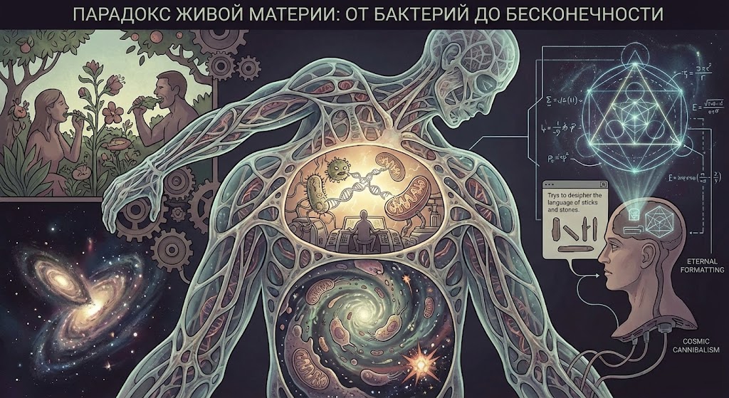 Мы летим по жизни, работаем, влюбляемся и строим планы, но фундаментальная биологическая цель этого движения – обслуживание микромира внутри нас. Человек мало что контролирует в собственном организме. Биение сердца, деление клеток, переваривание пищи, гормональный баланс – всем этим управляет автоматическая система, налаженная «квартирантами». Нам оставили лишь примитивные функции: найти топливо, загрузить его в рот и вывести отходы системы. В сухом остатке, человек – это сложный биологический туалет и транспортная платформа для истинных строителей жизни.