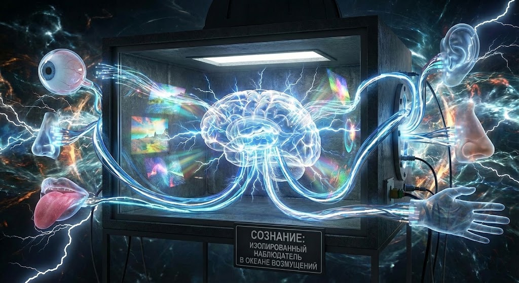 Выйдите к быстрому ручью и присмотритесь: там, где течение встречает камень, вода закручивается в плотный водоворот. Если обвести его границу маркером, получим – «тело» вихря. Но попробуйте вытащить вихрь из реки – взять его «в руки» невозможно: в нём нет ничего, кроме той же самой воды, что и в остальном потоке. Точно так же человеческий организм – это локальная завихрённость общего океана сознания, а не независимая фабрика, которая «производит» переживания.